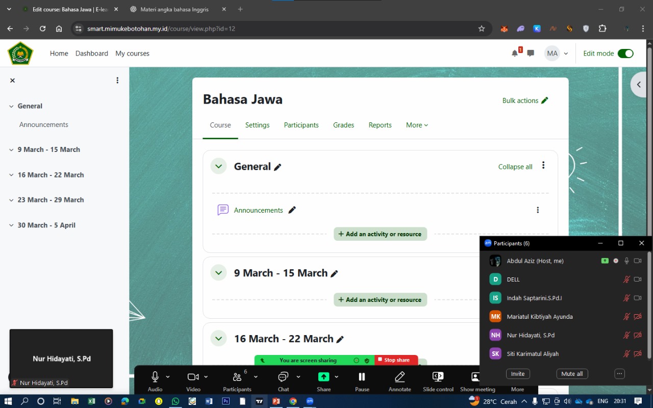 Pada webinar internal ini, peserta diajak memahami secara mendalam tentang pemanfaatan Moodle sebagai jembatan digitalisasi pembelajaran. Diskusi berlangsung aktif, dengan sesi tanya jawab yang interaktif antara fasilitator dan peserta.